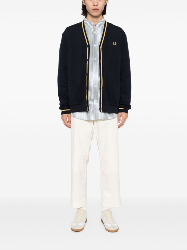 logo-embroidered button-up cardigan