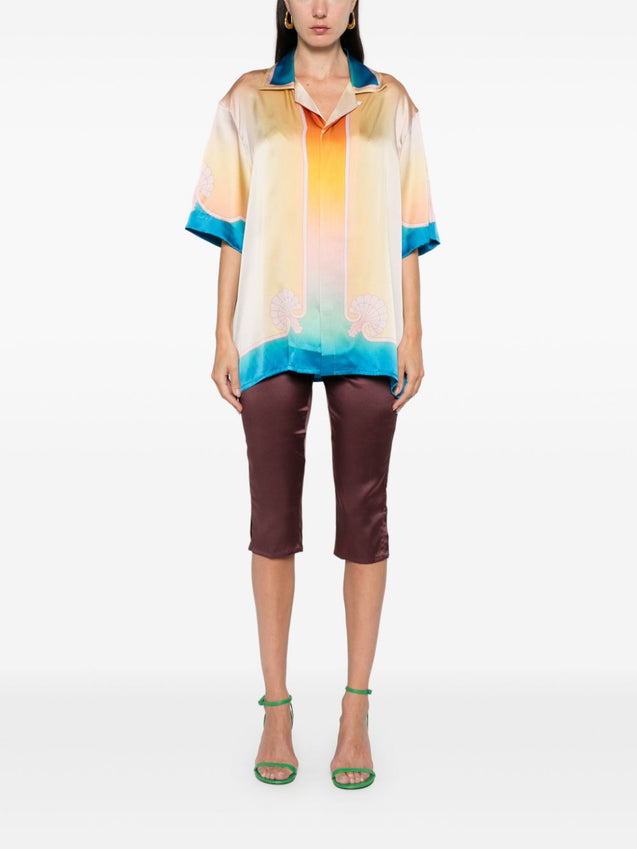 Casablanca is a reimagining of après-sport clothing and highlights founder Charaf Tajer’s French Moroccan heritage. Whilst Tennis Club hoodies and sweatshirts are reminiscent of fresh French whites, illustrative silk shirts speak to the brand’s vibrant Morocco base. Silhouettes are refined yet relaxed, easing your transition from the courts to the sports club. Look out for denim jackets to layer over knitted sweaters featuring the signature orange motif.