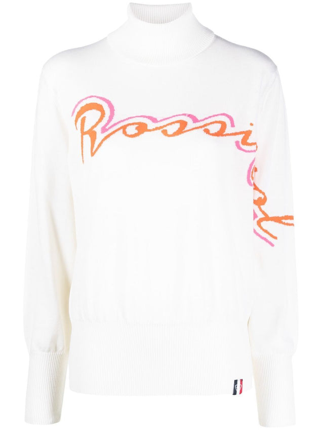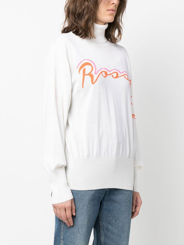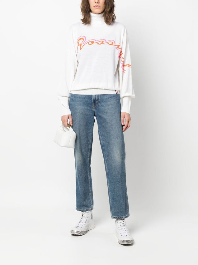 sweter z mieszanki wełny merynosów z logo intarsją
