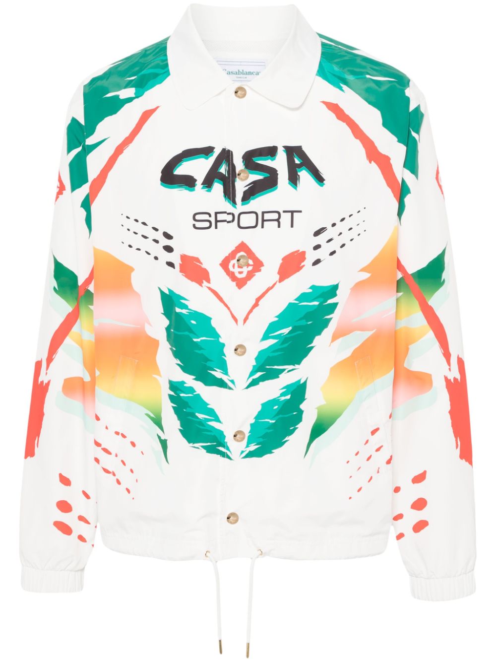 Casablanca to nowa interpretacja odzieży après-sportowej, która podkreśla francusko-marokańskie dziedzictwo założyciela Charafa Tajera. Podczas gdy bluzy z kapturem i swetry Tennis Club przypominają świeże francuskie białe ubrania, ilustracyjne jedwabne koszule nawiązują do żywej bazy marki w Maroku. Sylwetki są wyrafinowane, ale jednocześnie swobodne, ułatwiając przejście z kortów do klubu sportowego. Szukaj kurtek dżinsowych, które można założyć na swetry z dzianiny z charakterystycznym pomarańczowym motywem.