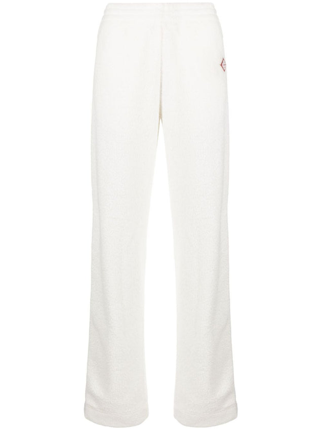 spodnie dresowe z polaru z naszywką z logo i bocznym paskiem