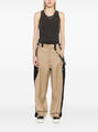 wełniane spodnie z szerokimi nogawkami i siateczką